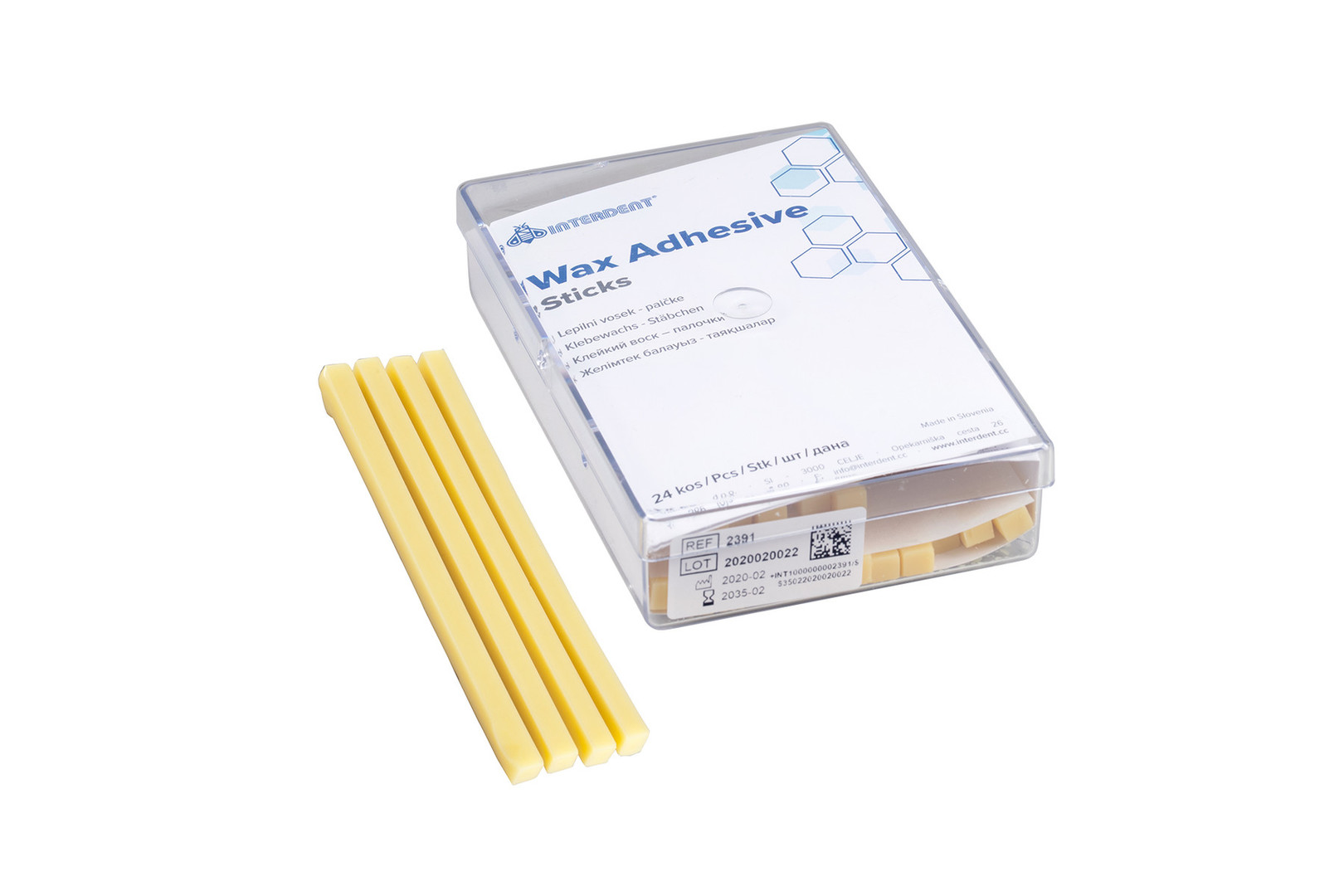 Выпускается в блоках или в виде палочек. Обладает высоким клеющим свойством, не смазывается. Для временной фиксации металлических частей, пластмассы и гипса.